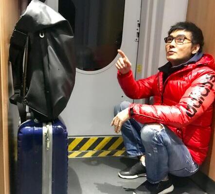 50岁焦恩俊挤高铁 没有座位蹲在车厢一角