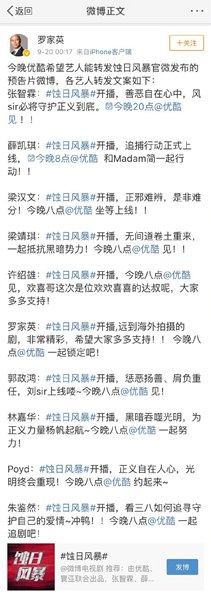 笑疯,罗家英微博宣传新剧,把所有人的文案都copy发出来了。