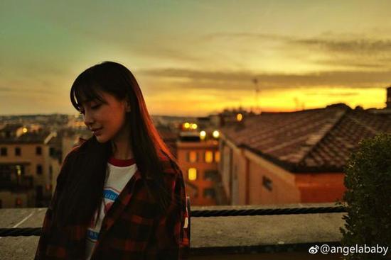 杨颖罗马晒侧颜美照 装扮随性似少女