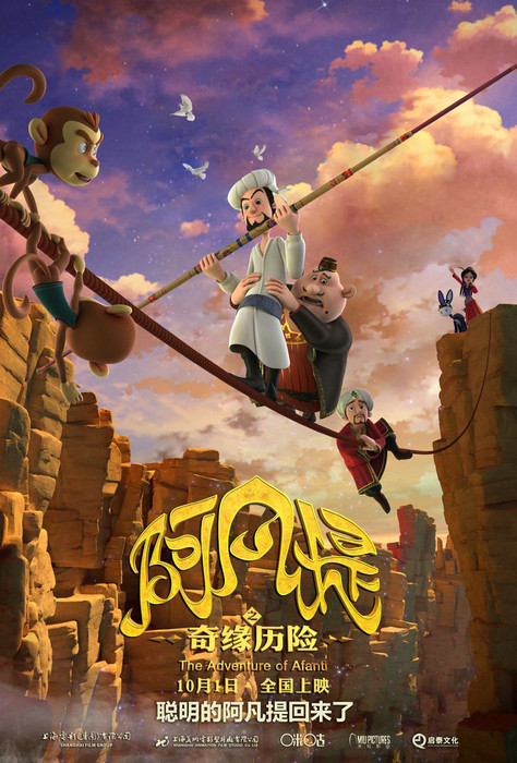 将于10月1日国庆假期上映的3D动画电影《阿凡提之奇缘历险》由上海电影有限公司、上海美术电影制片厂有限公司出品,咪咕文化科技有限公司、上海米家文化传播有限公司、北京启泰远洋文化传媒有限公司、苏州米粒影视文化传播有限公司联合出品。