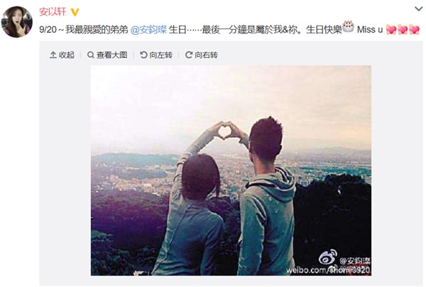 安钧璨冥寿安以轩发文缅怀:最亲爱的弟弟,生日快乐