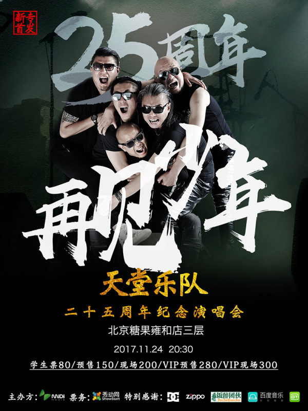 今年冬天这场25周年纪念演唱会,主题是“再见少年”,意为与少年重新相遇。这场盛会既是乐队多年历程的总结,又预示着一个新的开始。这次演唱会是继乐队20周年演唱会之后,5年以来第一次举办专场演唱会。20首新歌加经典歌曲诚意奉献,邀请乐队历年成员参与演出,更有新专辑现场首发和精美周边产品发售。作为一支老少皆宜的乐队,天堂从来都是在“讲述老百姓自己的故事”。11月24号晚上,天堂邀请你来到糖果雍和店三层参加这场年末的盛大聚会!