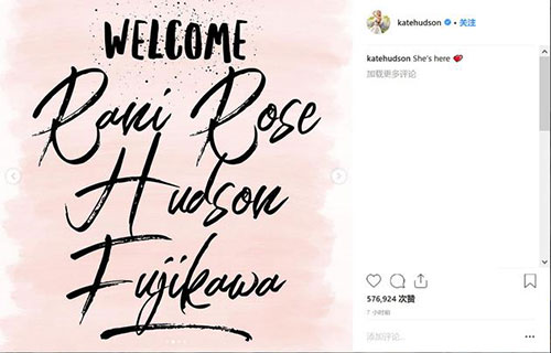 据台湾媒体报道,10月4日凌晨,39岁美国女星凯特·哈德森于社交网站宣布,于当地时间10月2日为Chief前吉他手男友Danny Fujikawa诞下了女娃,取名Rani Rose Hudson-Fujikawa。