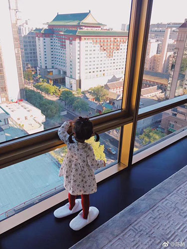 10月5日上午,陈赫在微博晒出女儿安安穿着大号拖鞋站在落地窗边的照片并配文道:“你们的假期余额不足……”照片中安安扎着两角辫、穿着不合脚的拖鞋,看上去十分滑稽可爱。