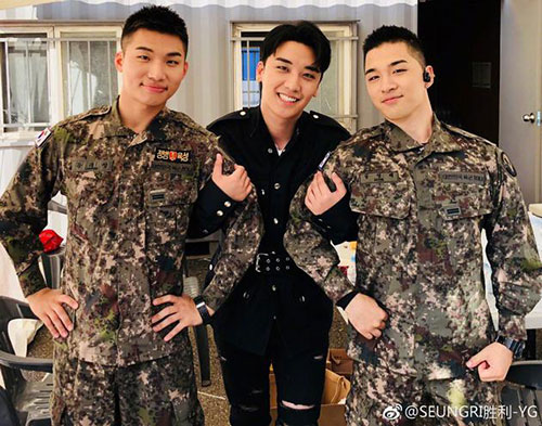 10月7日,BIGBANG成员胜利在微博分享与正在服兵役的姜大声和太阳的合影,引来粉丝激动留言。