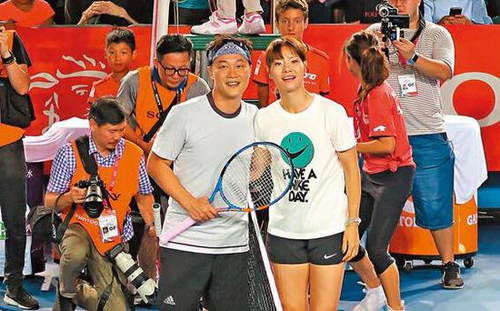 陈奕迅收李娜球拍兴奋 网球名人赛大搞气氛