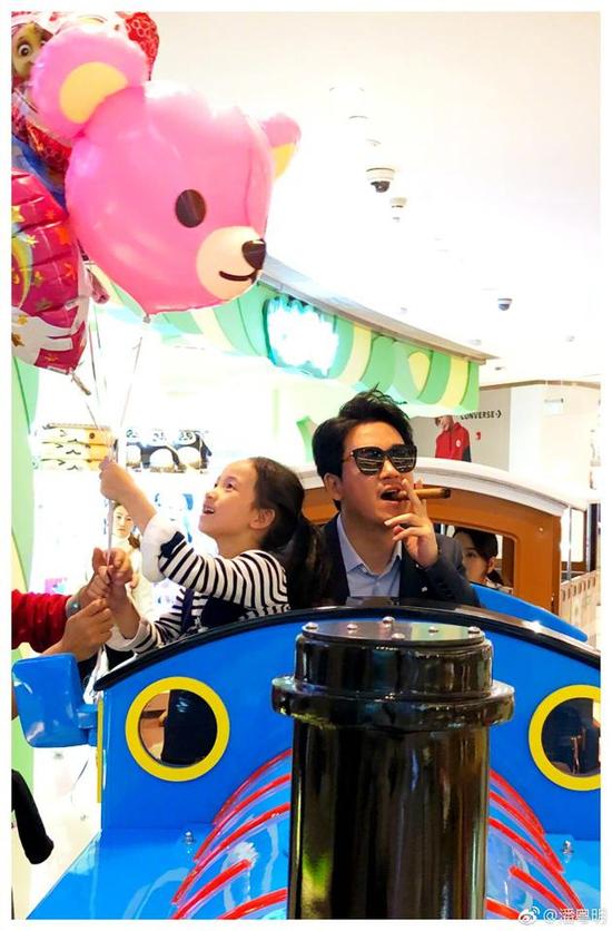 10月11日,潘粤明晒出一张照片,并配文称:“哈哈第一次开火车,还没驾照。”照片中的他身穿西服,坐在卡通火车的司机位置,他戴墨镜,叼着雪茄,看起来很有“大哥范&rd