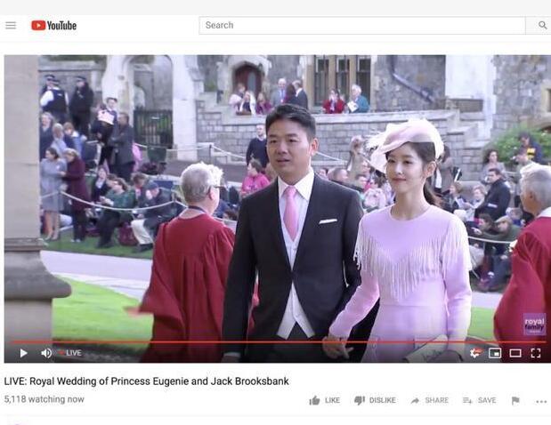 据英国媒体报道,英女王疼爱的孙女尤金妮公主Princess Eugenie今日大婚,刘强东携妻子章泽天早前在伦敦街头被偶遇,后又现身婚礼现场被拍。