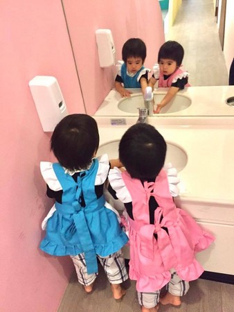 照片中的两人都玩得非常投入,还一起挤到洗手台前洗手,似乎没有发现自己被偷拍了,林志颖在发文中开心底大赞,两个儿子穿着女仆装玩家家酒的模样非常可爱,但是他也忍不住自嘲是“坑娃的爹”,并向两个儿子喊话,“希望以后长大看到爸比发的照片不要生气喔。”