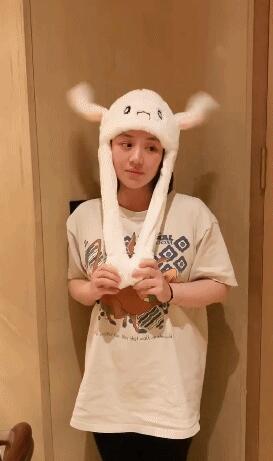 马思纯玩性大发玩兔耳朵帽子 笑声魔性好呆萌