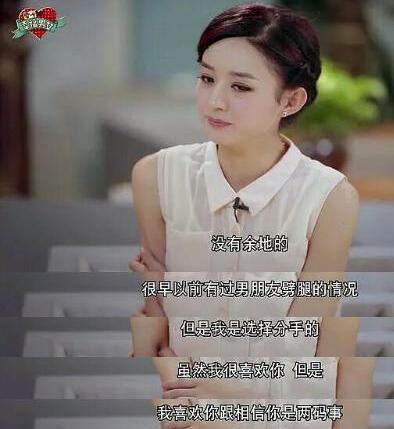 赵丽颖曾在某节目中谈到男友出轨问题,她坦然道遇到这种问题自己一定会不留余地的分手,喜欢你和相信你是两码事。
