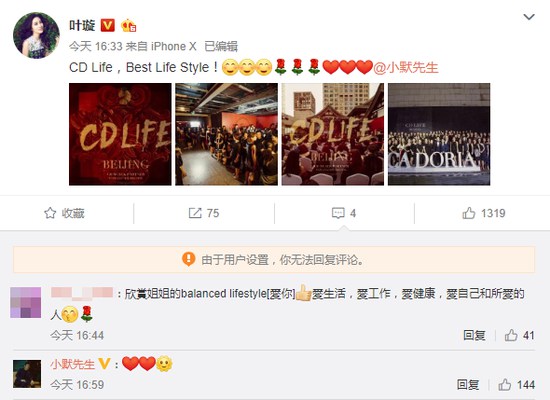 近日,时有消息传出叶璇与小默先生已分手,两人在恋爱过程中一直十分高调,而叶璇败诉给小默先生前女友的事情也是闹得沸沸扬扬。10月20日,叶璇公开喊话小默先生配文玫瑰花及爱心,评论中,小默先生也甜蜜回应爱心表情,二人亲密互动力破分手传闻。