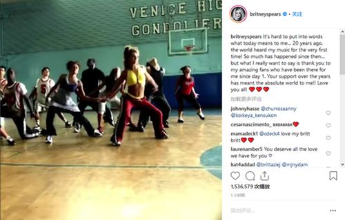 北京时间10月24日凌晨3点55分,小甜甜布兰妮在社交网账号发布消息,“很难用语言来描述今天来说对我意味着什么,20年前,这个世界第一次听到我的声音,从那以后发生了如此多的事。但是我真正想说的是,谢谢你们能够成为我令人惊叹的粉丝,从我出道第一天就开始支持我。”并附出道歌曲《...baby one more time》的MV视频。