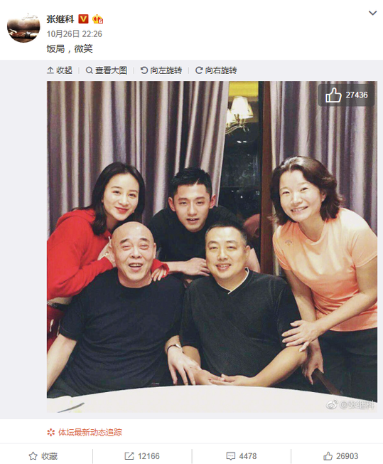 破不和传言!张继科晒与刘国梁夫妇合影:饭局,微笑