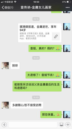 金庸女儿确认父亲去世的消息 称不便受访