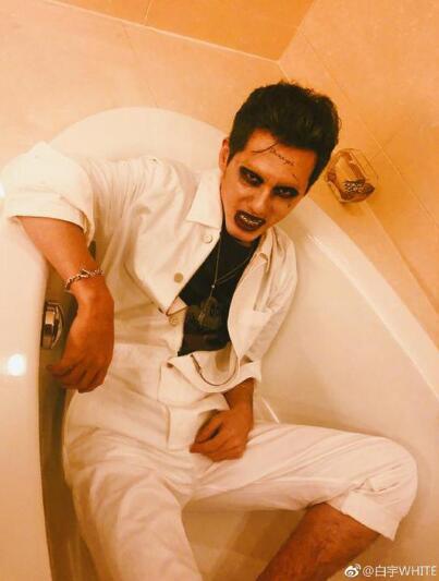 又到了一年一度的万圣节cos大赛,白宇也来凑热闹。10月31日晚,白宇通过微博晒夸张妆容照。照片中,白宇身穿白色衣服,躺在浴缸里,发黑的嘴唇和厚重的、大大的烟熏妆,十分夸张,露出狰狞的表情,一副吸血鬼的模样,看着非常的吓人。