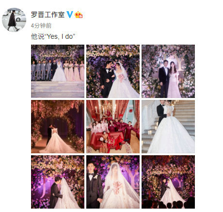甜!唐嫣罗晋晒婚礼现场美照:Yes, I do