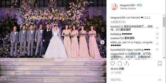 唐嫣婚后首晒结婚照 配文"Just Married"甜度满分