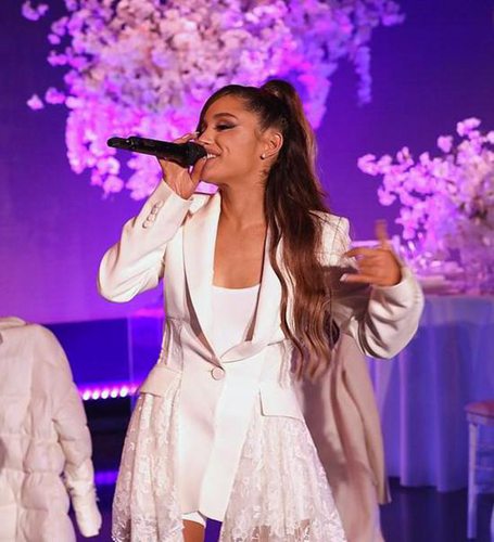 当晚,爱莉安娜身穿带蕾丝垂边的白色上装,下配白色过膝长靴,站在椅子上演唱。“和朋友们在一起的时间更多/我没什么好烦恼的事/另外我遇到了别的一个人/我们聊得很不错”。从椅子上下来时,爱莉安娜脚下一个不稳,差点摔倒,脱口而出“哎呀,我的天”,但她很快稳住重心,继续演唱,连一个音都没跑。“这个人会是最后一任/因为她的名字叫爱莉/现在的我无比满意。”