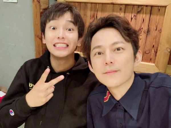 11月8日晚,何炅晒出和彭昱畅合影,并调侃道:“何炅和宝藏男孩!”照片中,何炅手拿相机自拍,露出迷之微笑,十分的帅气,身后的彭昱畅瞪着眼睛,咧着嘴巴,露出整齐洁白的牙齿,比着剪