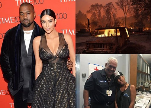 卡戴珊夫妇聘请私人消防员,GaGa亲身探望灾民。