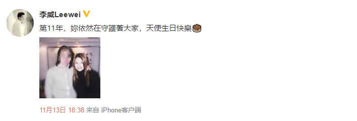 13日,李威在社交媒体上发文“第11年,妳依然在守護著大家,天使生日快樂
