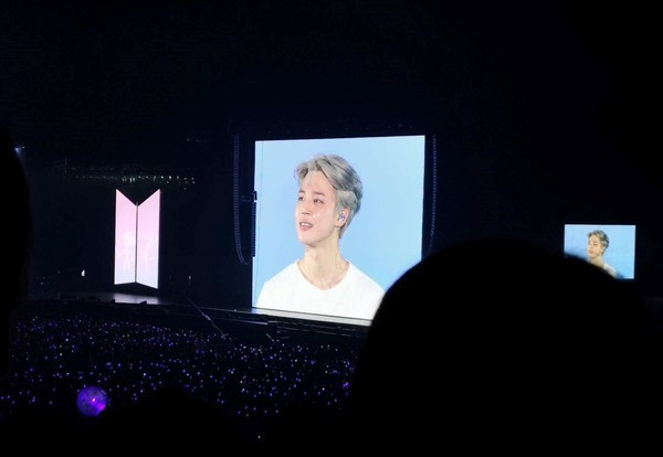 他一边说话,大屏幕照着他的脸庞,眼眶十分湿润,目击的粉丝说RM、V、J-Hope也疑似泪光闪闪,而每当Jimin说一段话,台下粉丝也跟着流泪,甚至发出啜泣声,场面十分催泪,最后他捂着眼睛说喜欢大家,这一幕让台下粉丝眼泪爆发。