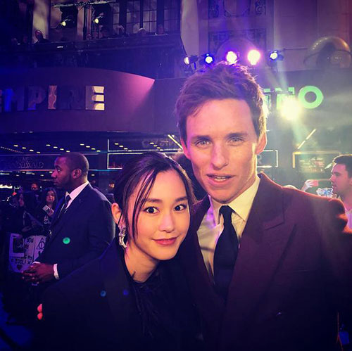 桐谷美玲配文道:“在《神奇动物:格林德沃之罪》的伦敦首映礼上与扮演纽特的埃迪合影了,非常荣幸。”