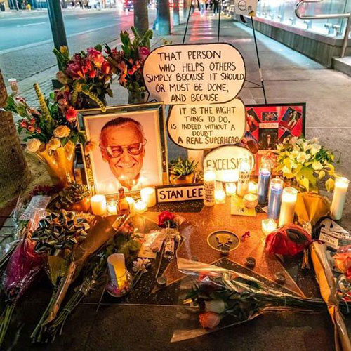 除此之外,许多影迷、漫迷纷纷通过不同方式对斯坦·李表达悼念,有的影迷则扮成了“美国队长”的样子为其献上鲜花。