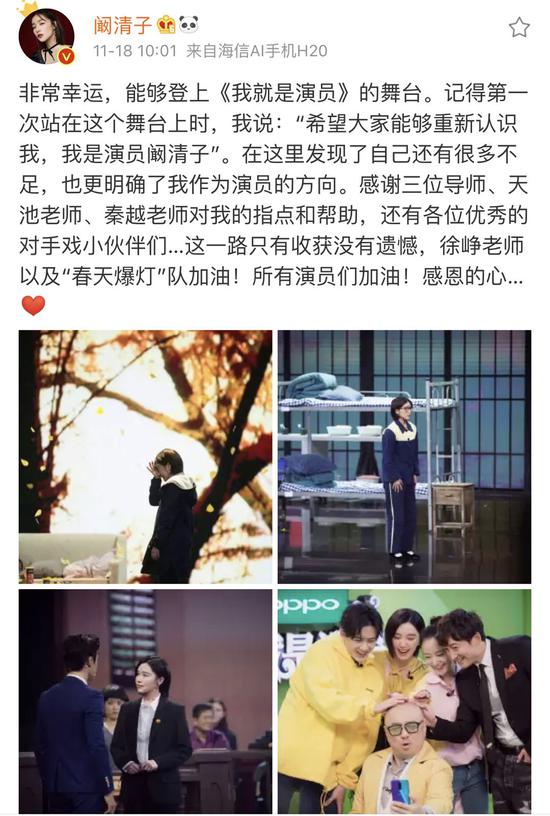 阚清子发文感谢《我就是演员》:只有收获没有遗憾