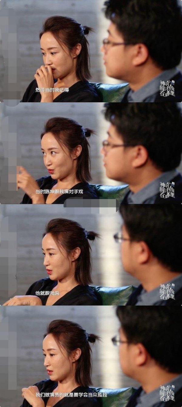 当时在剧中和自己拍对手戏的陈坤曾开导她“我们做演员的,就是要学会当众孤独”。自己受到很大启发。