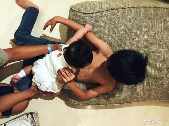 此微博曝光后,网友纷纷围观并留言称:“一家人好暖呀!”“多么美好的画面,这就是幸福的定义。”“哥哥妹妹好有爱,好温馨的场景!”
