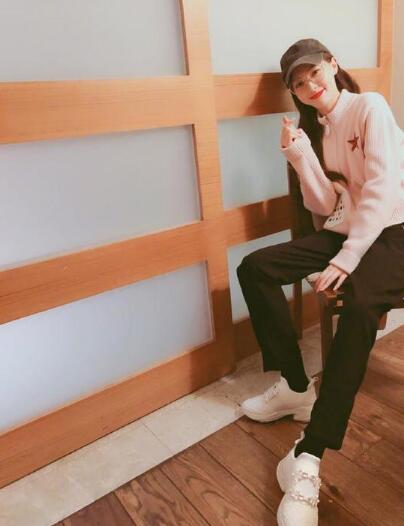 23日,唐嫣在自己微博晒出一张美照,并配上一个比心的表情。照片中的她身穿白色毛衣,戴着鸭舌帽和金丝边眼镜,脚踩白色运动鞋,红唇抢镜,甜笑比心,十分可爱。唐嫣斜坐在椅子上,秀出长腿,很是苗条。