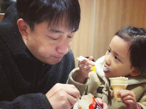 黄磊与小女儿一起分吃冰淇淋 多妹俏皮模样暖化人心