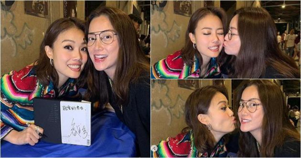 容祖儿跟霍汶希除了亲嘴以及在唱片上签名之外,还在唱片上写上“亲爱的老母”,十分搞笑。