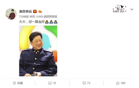 常远发文悼念常贵田:大大,您一路走好