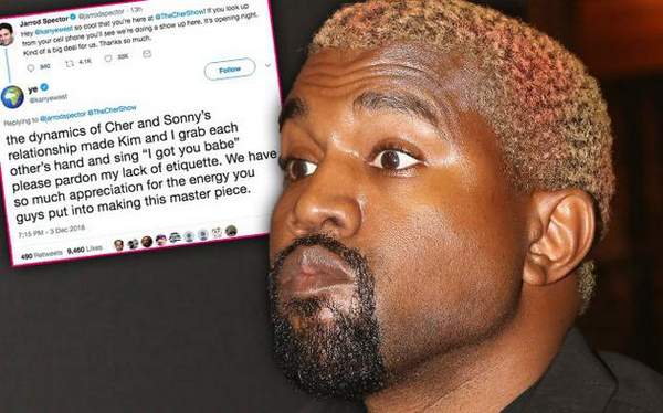 据外媒报道,说唱巨星坎耶-威斯特比很多粉丝想得更加粗鲁无礼。12月3日星期一晚,侃爷因为在纽约百老汇剧《雪儿秀》首演中使用手机备受指摘。侃爷为自己的失礼而道歉,并称赞演出让他深受感动。不过据目击者称,