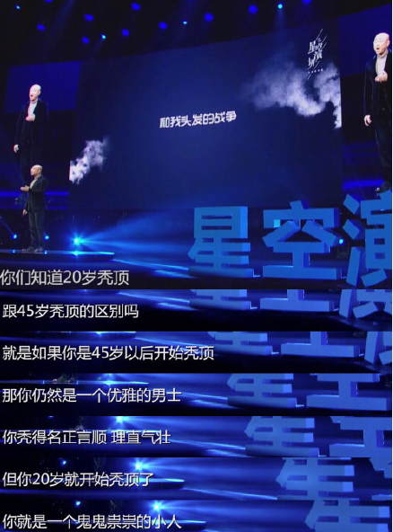 近日,徐峥做客某节目讲述自己20岁时的秃顶经历,自嘲45岁秃顶理直气壮,20岁秃顶就是鬼鬼祟祟的小人,心酸又好笑。节目中,徐峥自述,自己也曾有一头乌黑亮丽的长发,直到大学二年级,自己就开始秃头了,自嘲