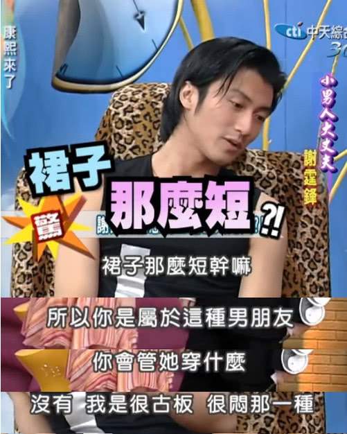 在节目中,谢霆锋直言“如果我看到女朋友穿比较暴露的一些穿着,我会不喜欢。”甚至自我评价是很古板的类型。