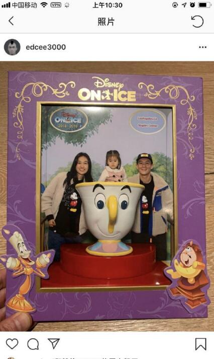 陈冠希一家三口游玩迪士尼 晒全家福十分温馨