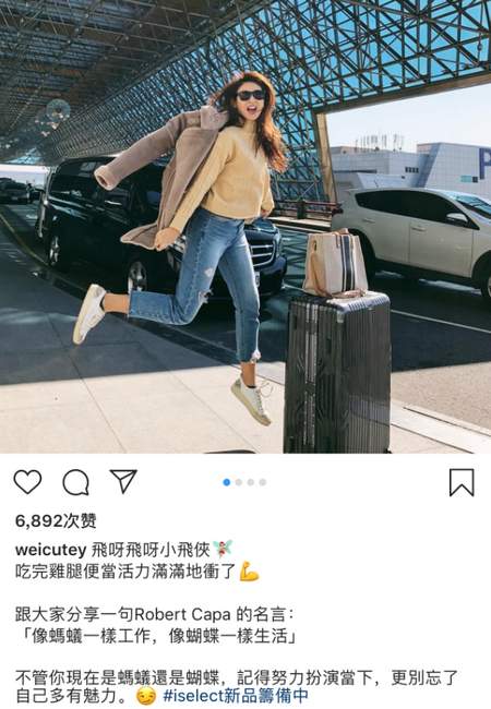 日前,赖弘国这边刚刚完成注册,前妻Ivy即在社交平台晒出美照,并发文为自己打气:“飞呀飞呀小飞侠,吃完鸡腿便当活力满满地冲了,跟大家分享一句Robert Capa的名言:‘像蚂蚁一样工作,像蝴蝶一样生活。’不管你现在是蚂蚁还是蝴蝶,记得努力扮演当下,更别忘了自己多有魅力。”
