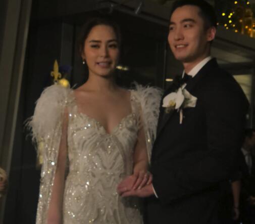 12月20日,阿娇与老公赖弘国在香港尖沙咀丽思卡尔顿摆喜酒,现场照片曝光,整个会场布置的温馨浪漫,满满少女心。现场,阿娇夫妇受访。赖弘国表示预备了一个神秘礼物给阿娇,待会还有一个神秘节目要送给阿娇。他