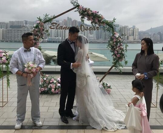 据香港媒体报道,萧润邦和江若琳23日大婚,进行完接新娘及向长辈倒茶仪式后,再在海边的露天场地进行注册仪式,新娘子穿上低胸露腿白婚纱手挽父亲进场,穿上礼服及婚纱的两人,在伴娘和伴郎的陪伴下,向现场的来宾宣誓,萧润邦一开口就紧张到口吃,深呼吸后开口就说:“好惊呀。”之后他拉住新娘子手说:“我是她的…”朋友不停亏他:“不要喊呀,我有纸巾。”他说:“太阳要晒时,先晒我,落雨时我先湿,打雷的时候先劈我啦,I Love You !”此时,江若琳被感动得不停流泪,但又泪中有笑。