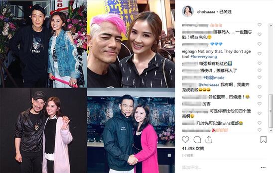日前,蔡卓妍与好姐妹容祖儿、霍汶希一同观看了刘德华的演唱会,演出结束后阿Sa在个人ins上晒出在后台与刘德华的合照,并大赞华仔是自己唯一一个既是偶像又是学习的榜样,入行38年,还是这么靓,这么有心,对所有人都好,那份坚持不是人人都能做到的。27日晚,阿Sa又晒出了与四大天王的合照,并配文称:“经过我多年努力,锲而不舍的精神,终于让我集齐四大天王的合照。”