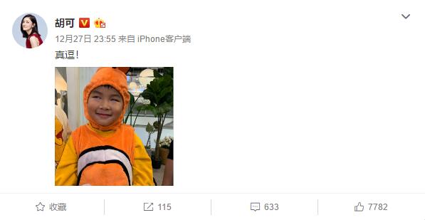 12月27日,胡可晒出一张儿子的照片,并配文称:“真逗”,疑回应被预测离婚一事。