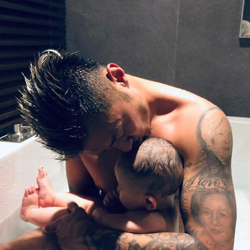 据香港媒体报道余文乐自从荣升人父之后,由型男变成“晒娃狂魔”,经常在社交网分享儿子余初见,但就照例挡着他的模样。今日,余文乐在社交网上传一张和Cody两父子共浴的照片,照片中见余文乐抱着儿子坐在浴缸,二人都光脱脱入镜,余文乐还低头亲儿子的头顶,画面十分温馨!