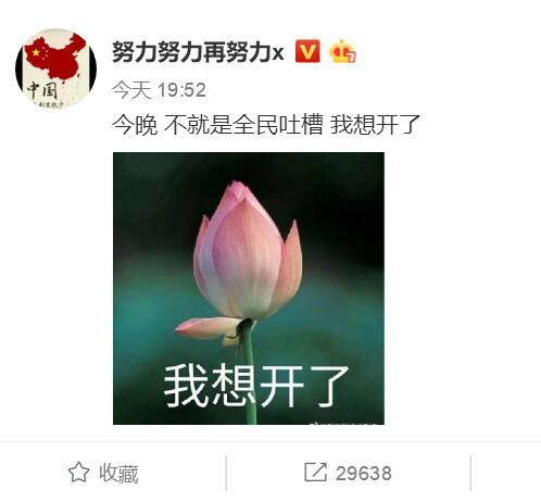 1月6日晚,张艺兴发文幽默回应《吐槽大会》,写道:“今晚,不就是全民吐槽?我想开了!”并配上一朵含苞待放的荷花图片自侃,十分的逗趣。在1月6日的《吐槽大会》收官节目中,张艺兴的