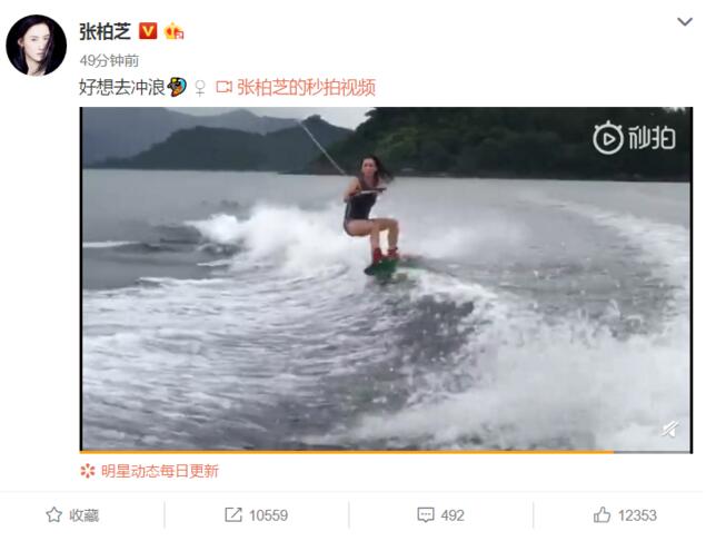 女神就是这么酷!张柏芝晒冲浪视频直呼想去