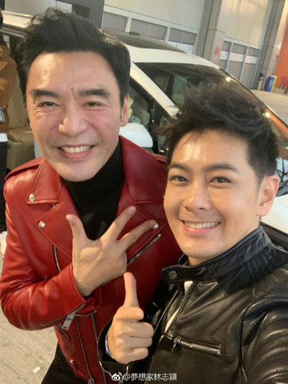 林志颖钟镇涛合影1月8日晚,林志颖晒出和老友钟镇涛的开心合影,并配文称:“遇到好久不见的好友@钟镇涛,同台工作真是开心!”照片中,林志颖穿着黑色皮衣,一手拿着相机一手比着&ld