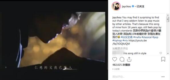 周杰伦分享《以父之名》MV:16年前写的歌到现在还流行